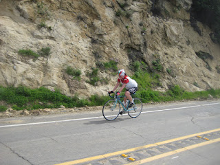 Heather's been busy with mid-term grades and lacking a bit of fitness, but low gears and a nice day can make up for a lot. The Piuma climb is about 5 miles with grades from 5-9% with some fun descents and ridge roads until...